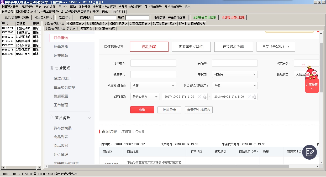 所有 千鱼软件 >> 开店必备软件 >> 拼多多软件 >> 《千鱼拼多多聊天机器人自动回复专家-多客服多后台集中管理》40元/月,200元/年 >> 软件说明
