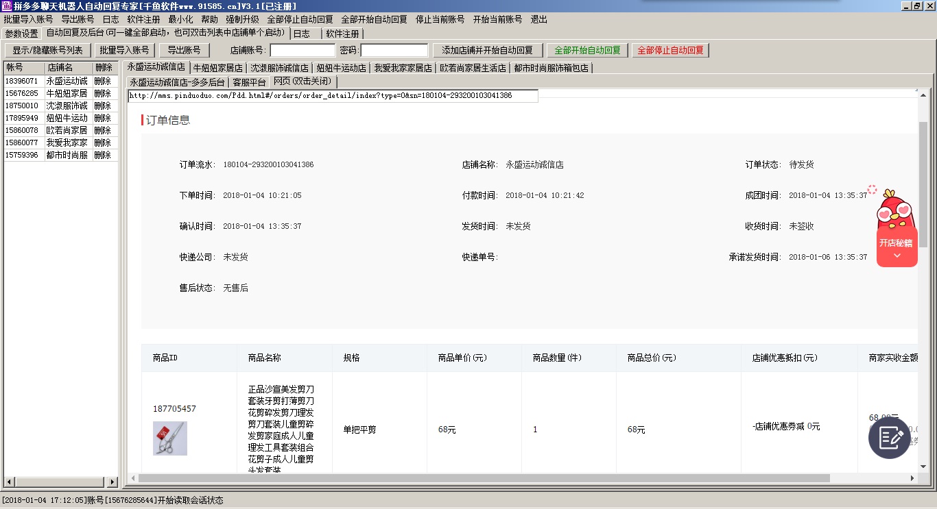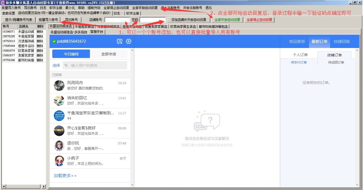 最新版:可同时打开多店拼多多后台及客服平台,可以点里面的按钮打开新的网页窗口,可以随时切换店铺账号查看,可以同时聊天及查看处理后台订单等,非常方便。