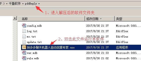 3. 双击解压后的目录“pddReply“进入,并双击“拼多多自动回复专家”运行本软件
