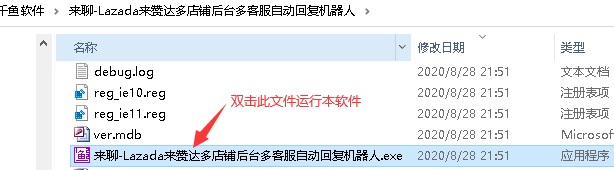 3. 双击解压后的目录“来聊-Lazada来赞达多店铺后台多客服自动回复机器人“进入,并双击“来聊-Lazada来赞达多店铺后台多客服自动回复机器人”运行本软件