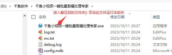 3. 双击解压后的目录“千鱼小视频一键批量剪辑处理专家“进入,并双击“千鱼小视频一键批量剪辑处理专家”运行本软件